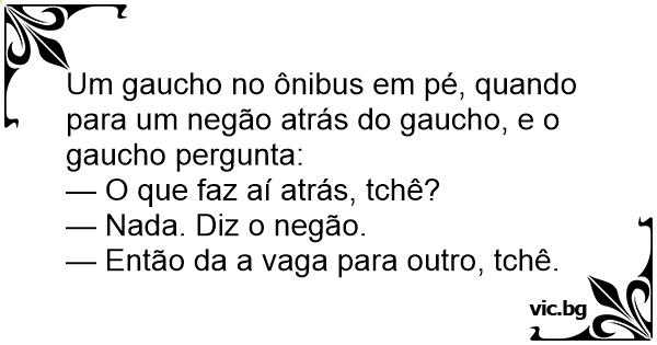 Um gaucho no ônibus em pé, quando para um negão atrás do gaucho, e o gaucho pergunta: