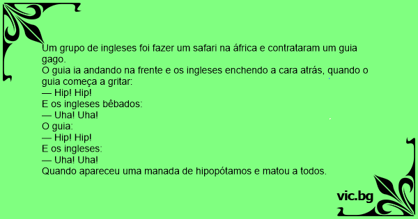Um grupo de ingleses foi fazer um safari na áfrica e contrataram um guia gago.