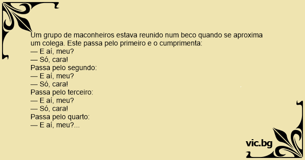 Um grupo de maconheiros estava reunido num beco quando se aproxima um colega. Este passa pelo primeiro e o cumprimenta: