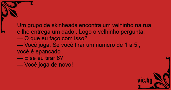 Um grupo de skinheads encontra um velhinho na rua e lhe entrega um dado . Logo o velhinho pergunta: