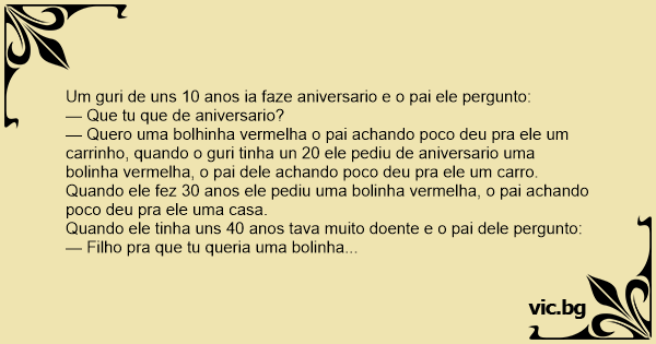 Um guri de uns 10 anos ia faze aniversario e o pai ele pergunto:
