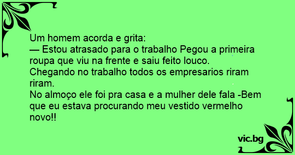 No almoço ele foi pra casa e a mulher dele fala -Bem que eu estava procurando meu vestido vermelho novo!!