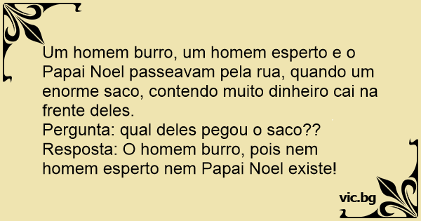 Resposta: O homem вurrо, pois nem homem esperto nem Papai Noel existe!