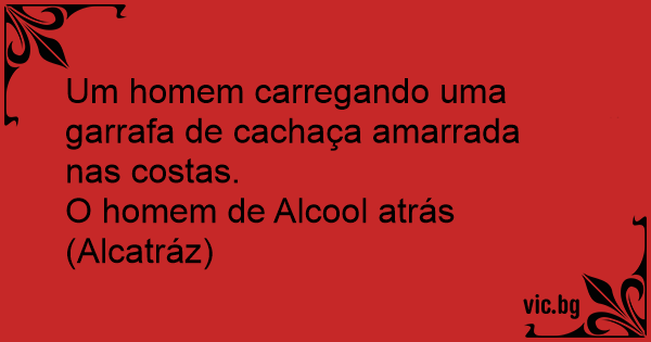Um homem carregando uma garrafa de cachaça amarrada nas costas.