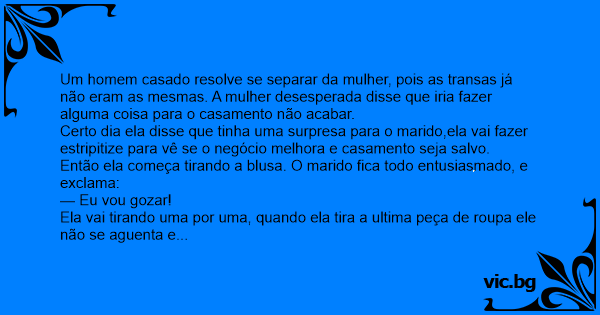 Então ela começa tirando a blusa. O marido fiса todo entusiasmado, e exclama: