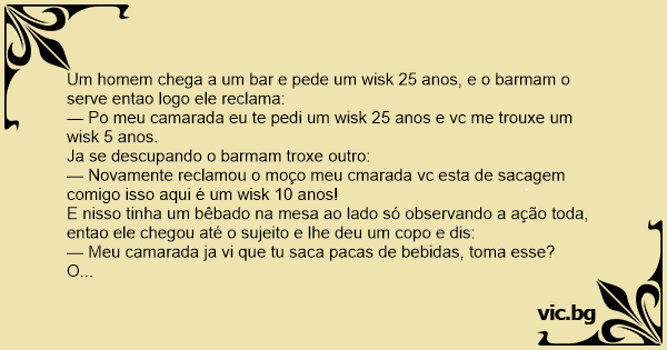 — Novamente reclamou o moço meu cmarada vc esta de sacagem comigo isso aqui é um wisk 10 anos!