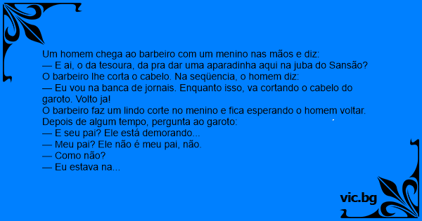 Um homem chega ao barbeiro com um menino nas mãos e diz: