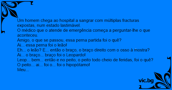 Um homem chega ao hospital a sangrar com múltiplas fracturas expostas, num estado lastimável.