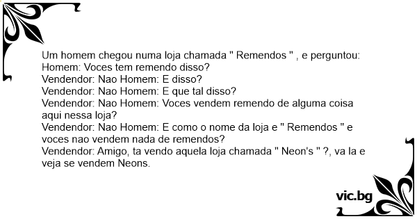 Um homem chegou numa loja chamada " Remendos " , e perguntou: