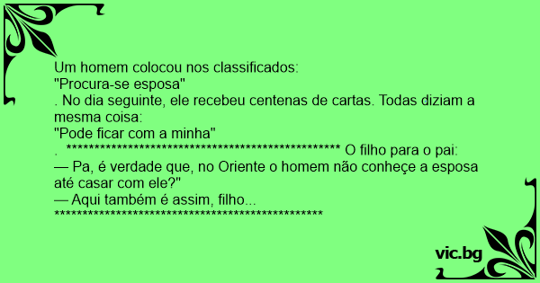 — Pa, é verdade que, no Oriente o homem não conheçe a esposa até casar com ele?"