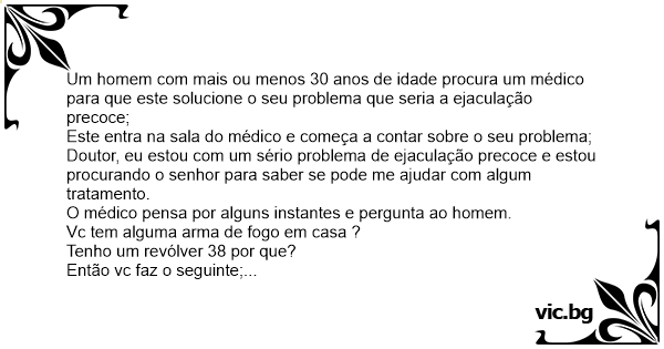 Um homem com mais ou menos 30 anos de idade procura um médico para que este solucione o seu problema que seria a ejaculação precoce;