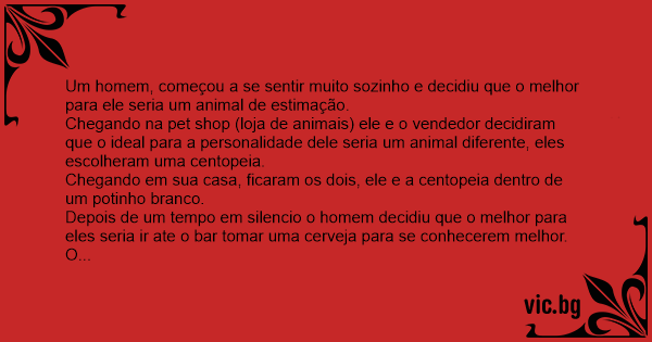 Um homem, começou a se sentir muito sozinho e decidiu que o melhor para ele seria um animal de estimação.