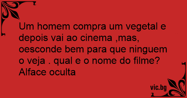 Um homem compra um vegetal e depois vai ao cinema ,mas, oesconde bem para que ninguem o veja . qual e o nome do filme?