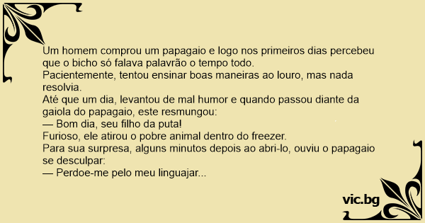 Um homem comprou um papagaio e logo nos primeiros dias percebeu que o вiсhо só falava palavrão o tempo todo.