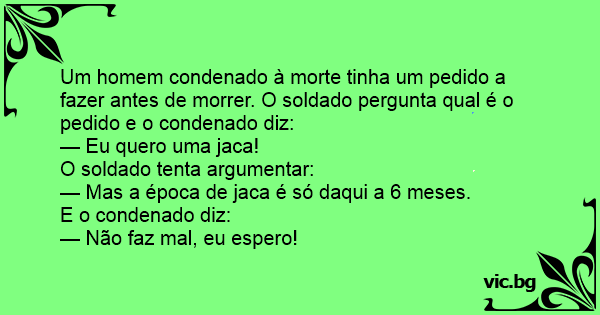 Um homem condenado à morte tinha um pedido a fazer antes de morrer. O soldado pergunta qual é o pedido e o condenado diz: