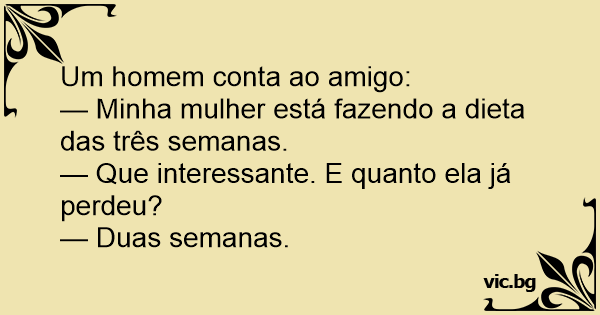 — Minha mulher está fazendo a dieta das três semanas.
