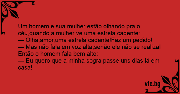 Um homem e sua mulher estão olhando pra o céu,quando a mulher ve uma estrela cadente: