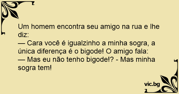— Cara você é igualzinho a minha sogra, a única diferença é o bigode! O amigo fala: