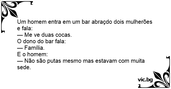 Um homem entra em um bar abraçdo dois mulherões e fala: