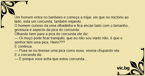 Um homem entra no banheiro e começa a mijar, eis que no mictório ao lado, esta um corcunda, também mijando.