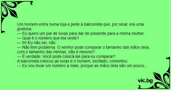 — Eu quero um par de luvas para dar de presente para a minha mulher.