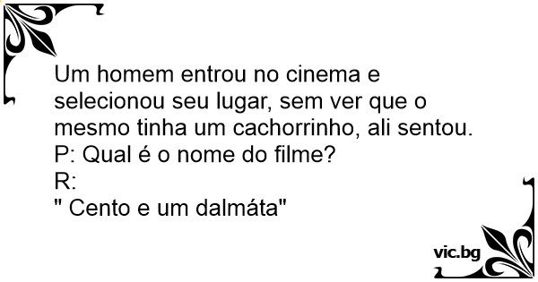 Um homem entrou no cinema e selecionou seu lugar, sem ver que o mesmo tinha um cachorrinho, ali sentou.