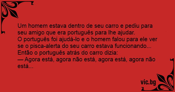 O português foi ajudá-lo e o homem falou para ele ver se o pisca-alerta do seu carro estava funcionando...