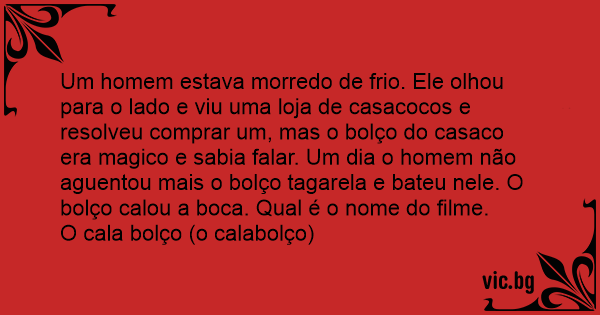 Um homem estava morredo de frio. Ele olhou para o lado e viu uma loja de casacocos e resolveu comprar um, mas o bolço do casaco era magico e sabia falar. Um dia o homem não aguentou mais o bolço tagarela e bateu nele. O bolço calou a boca. Qual é o nome do filme.