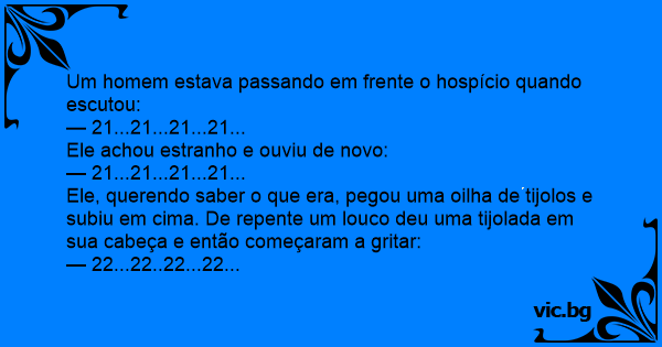 Ele, querendo saber o que era, pegou uma oilha de tijolos e subiu em cima. De repente um louco deu uma tijolada em sua cabeça e então começaram a gritar: