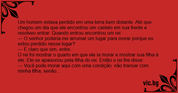 Um homem estava perdido em uma terra bem distante. Até que chegou um dia que ele encontrou um castelo em sua frente e resolveu entrar. Quando entrou encontrou um rei: