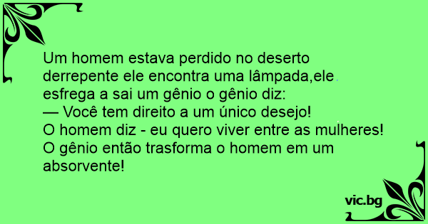 Um homem estava perdido no deserto derrepente ele encontra uma lâmpada,ele esfrega a sai um gênio o gênio diz: