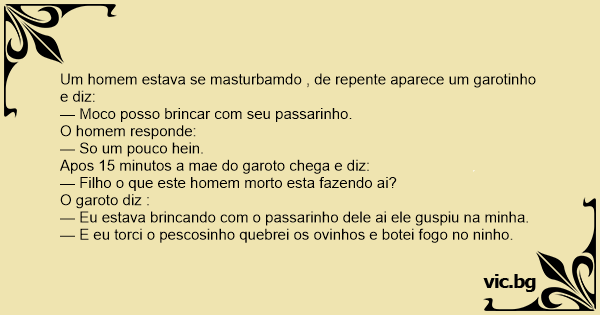 Um homem estava se masturbamdo , de repente aparece um garotinho e diz: