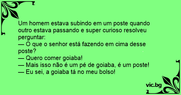 Um homem estava subindo em um poste quando outro estava passando e super curioso resolveu perguntar: