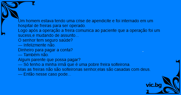 Logo após a operação a freira comunica ao paciente que a operação foi um sucess,e mudando de assunto...