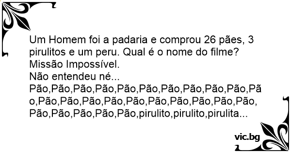 Um Homem foi a padaria e comprou 26 pães, 3 pirulitos e um peru. Qual é o nome do filme?