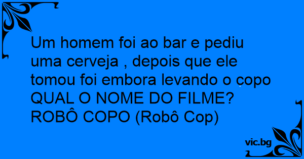 Um homem foi ao bar e pediu uma cerveja , depois que ele tomou foi embora levando o copo QUAL O NOME DO FILME?