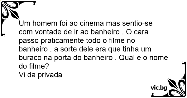 Um homem foi ao cinema mas sentio-se com vontade de ir ao banheiro . O cara passo praticamente todo o filme no banheiro . a sorte dele era que tinha um buraco na porta do banheiro . Qual e o nome do filme?