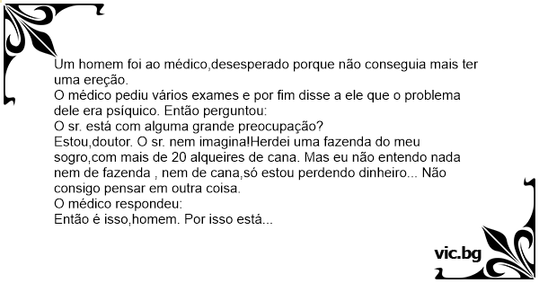 O médico pediu vários exames e por fim disse a ele que o problema dele era psíquico. Então perguntou: