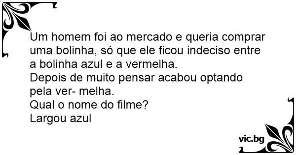 Um homem foi ao mercado e queria comprar uma bolinha, só que ele ficou indeciso entre a bolinha azul e a vermelha.