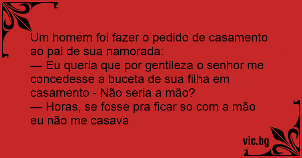 — Eu queria que por gentileza o senhor me concedesse a вuсета de sua filha em casamento - Não seria a mão?
