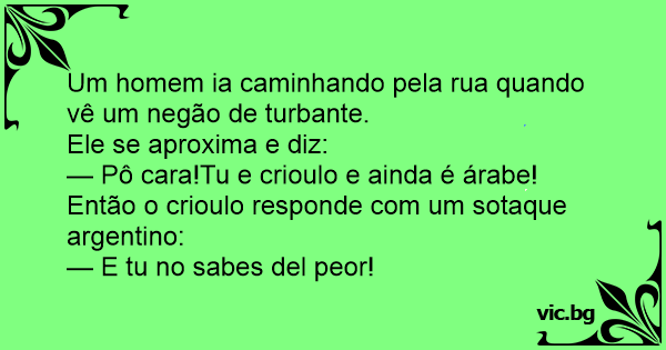 — Pô cara!Tu e crioulo e ainda é árabe!