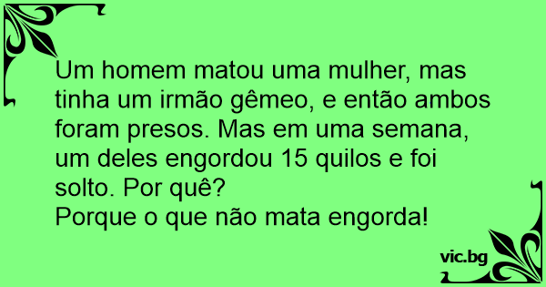 Um homem matou uma mulher, mas tinha um irmão gêmeo, e então ambos foram presos. Mas em uma semana, um deles engordou 15 quilos e foi solto. Por quê?