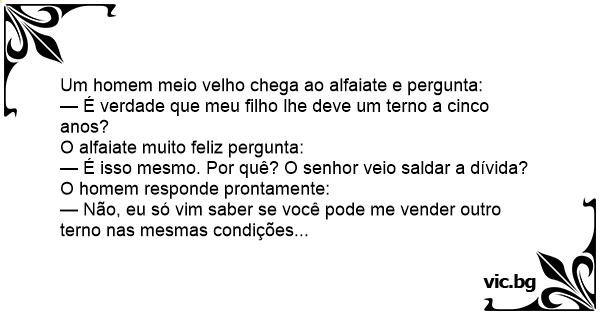 — É verdade que meu filho lhe deve um terno a cinco anos?