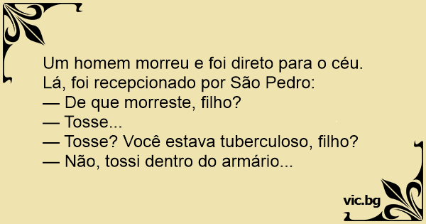 Um homem morreu e foi direto para o céu. Lá, foi recepcionado por São Pedro: