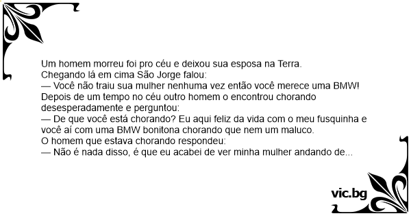 — Você não traiu sua mulher nenhuma vez então você merece uma BMW!