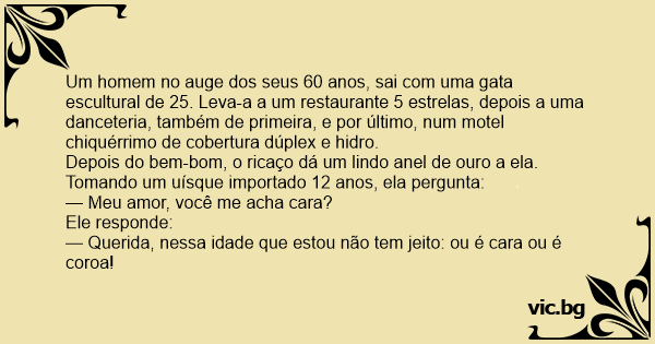 — Querida, nessa idade que estou não tem jeito: ou é cara ou é coroa!