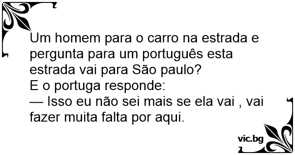 Um homem para o carro na estrada e pergunta para um português esta estrada vai para São paulo?