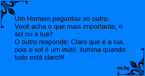 O outro responde: Claro que é a lua, pois o sol é um inútil, ilumina quando tudo está claro!!!