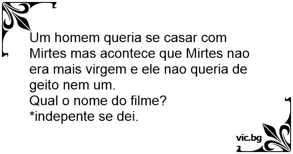 Um homem queria se casar com Mirtes mas acontece que Mirtes nao era mais virgem e ele nao queria de geito nem um.