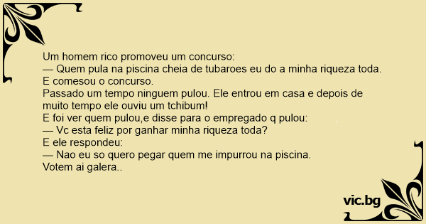 — Quem pula na piscina cheia de tubaroes eu do a minha riqueza toda.